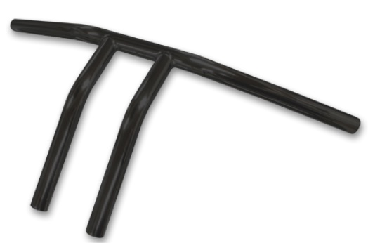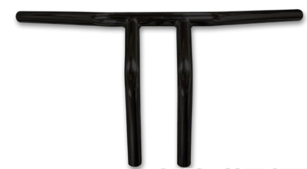 ブラック 10インチTバー 81年以前 配線用カスタム用ヘコミ無し幅62.5cm、高25cm、プルバック20cmライザーボルトサイズ 1/2-13(品番2310-0010)