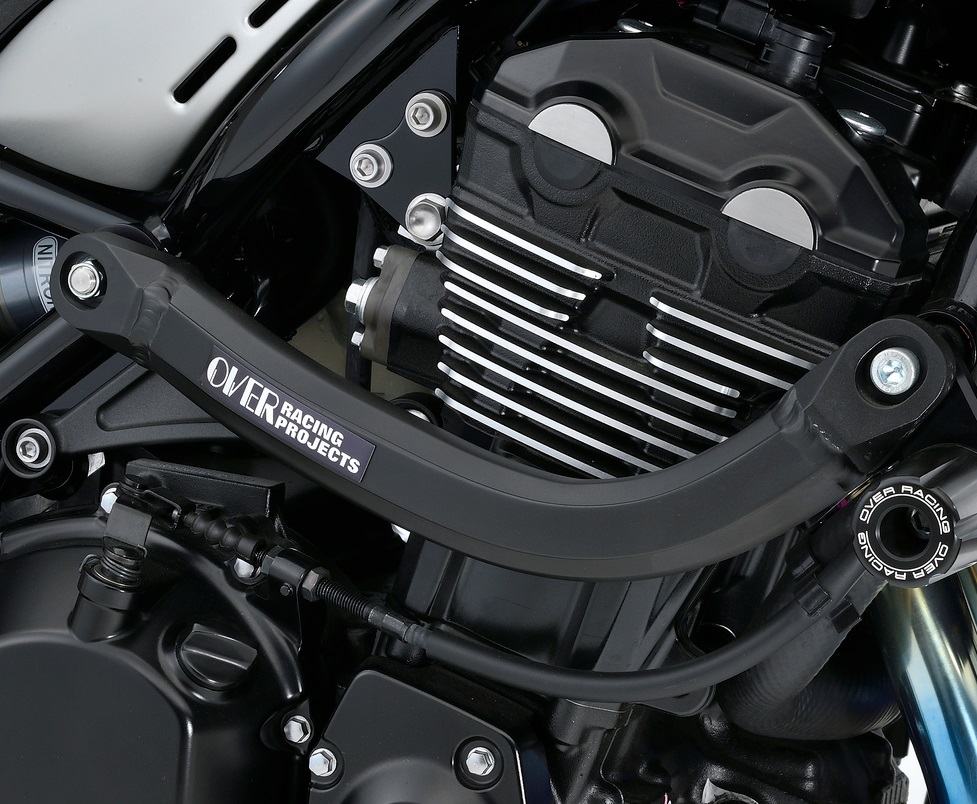 サブフレームキットの効果は、補強、保護、ドレスアップと、カスタムにおいては必要な要素が全て含まれるため、過去に多くのオリジナルフレームを作り出したOVERならではの発想で、フレームワークへのアプローチをデザインに込めて製品化。リリースされたZ900RS用パーツの中でも、特に自信作と言えます。・左右セット・ブラックガンコート仕上げ(塗装)・40mmx29mm日の字断面アルミパイプ(7N01)画像は、OVER製エンジンスライダーとの同時装着です。エンジンスライダー(OVER品番59-71-01B)は別売りです。サブフレームキット単品での取付けも可能です。