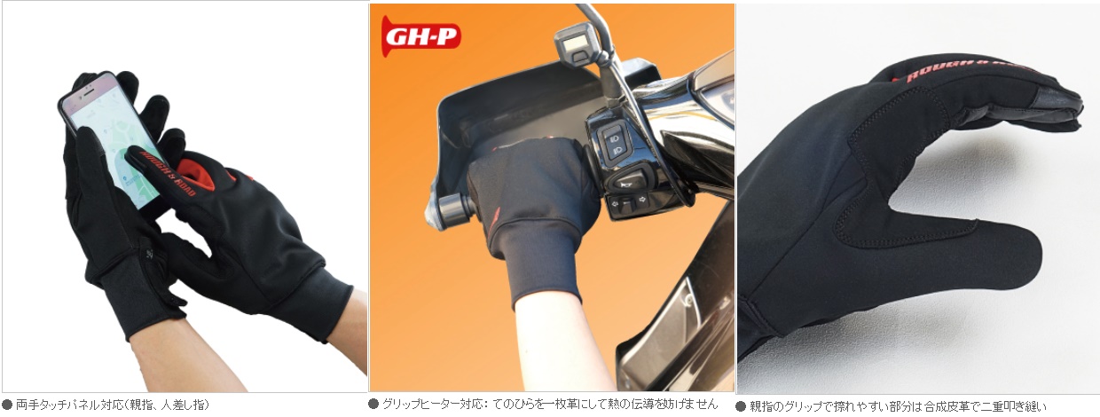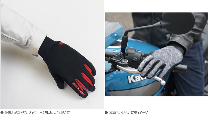 内装をフリースボンディングを施したウインドガードにすることで防風と保温を一人二役でこなします。指先タッチパネルはもちろん、てのひらを一枚革仕上げにしグリップヒーターの熱伝導を妨げないグリップヒーター対応。3レイヤー(三層)構造をうまくグローブに生かした、通勤通学、バイク以外のシーンでもおすすめのデイリーグローブです。ハンドルカバーとの相性も抜群です。MATERIAL:甲側/ウインドガードフリース 掌側/牛革、スマートタッチレザーFUNCTION:両手タッチパネル対応、グリップヒーター対応