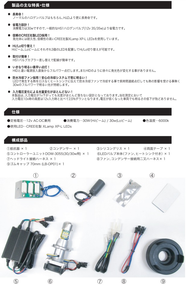 LB4-KSR LEDヘッドライトバルブキット HS1 Hi/Lo 6000K PROTEC(プロテック) KSR110PRO