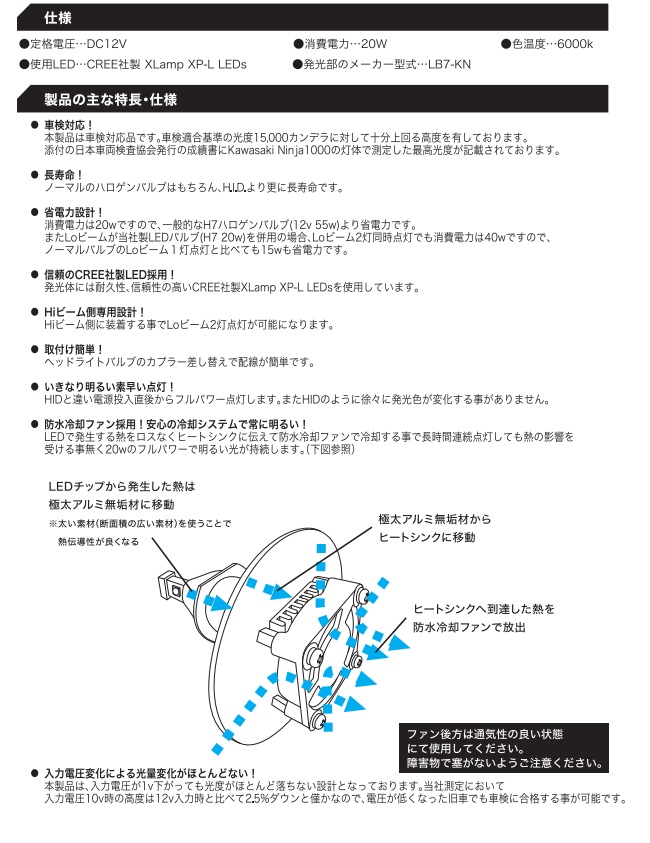 LB7W-KZ LEDヘッドライトバルブキット H7 Hi/Lo ※Hi側専用 6000K PROTEC(プロテック) Z250(13〜17年)