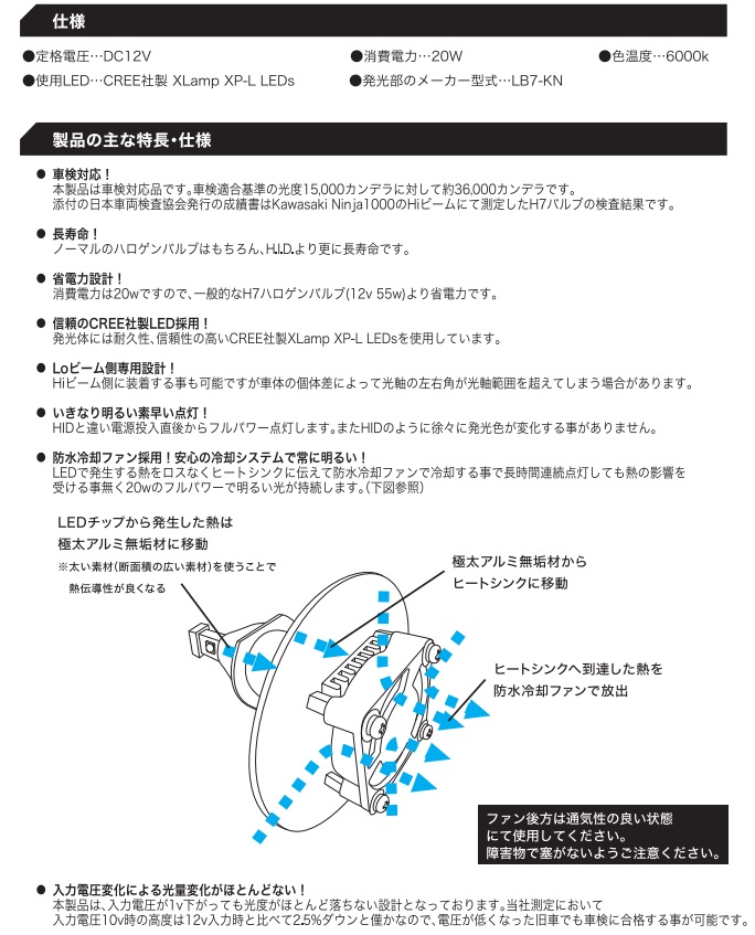 LB7-BRR LEDヘッドライトバルブキット H7 ※Lo側専用 6000K PROTEC(プロテック) BMW S1000RR(09〜14年)