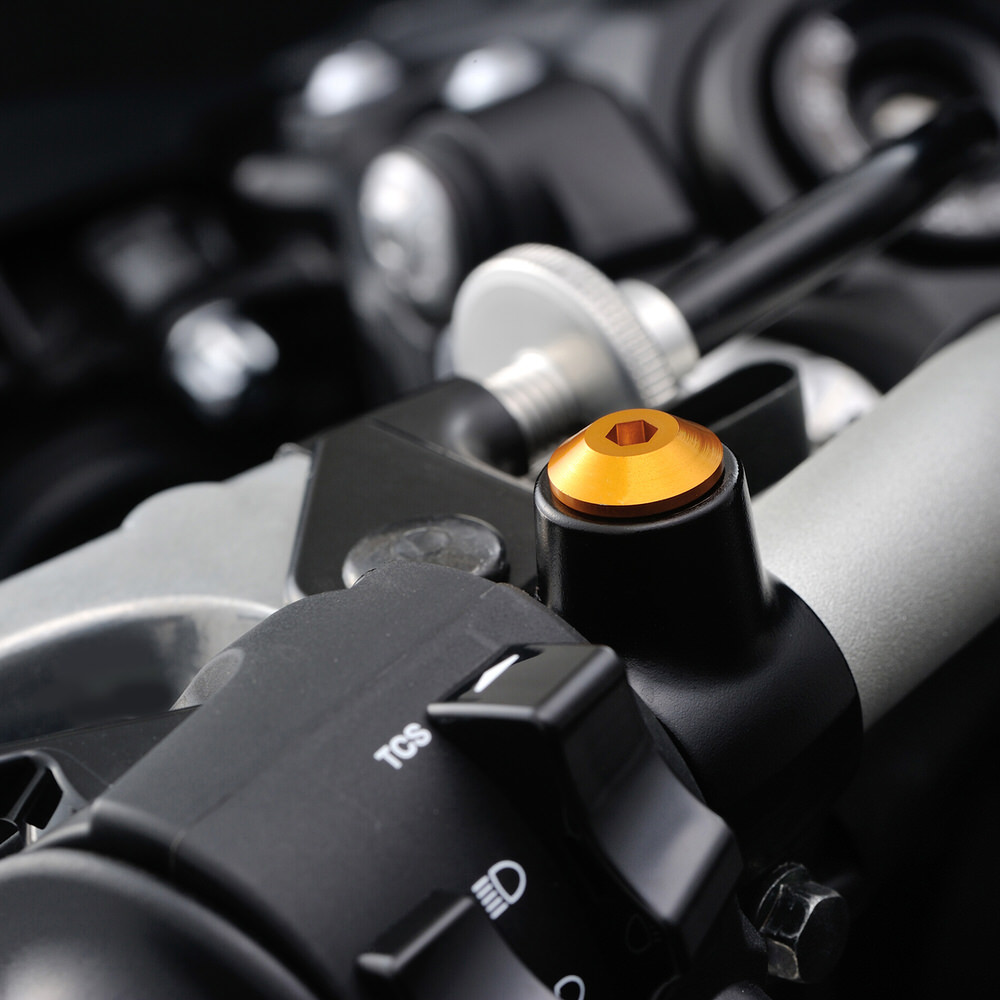 バーエンドミラー等に交換した際、純正ミラー取付穴を埋めるキャップボルト。1個売り。アルミ削り出しアルマイト仕上げ。正ネジ対応。4mmの6角レンチで取付けます。・サイズ:M10×P1. 25、外径:15mm、首下:11mm・材質:アルミ削り出し/アルマイト仕上げ