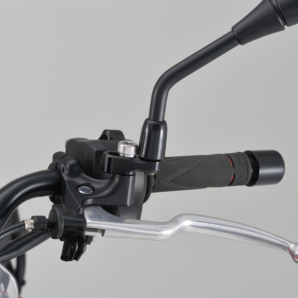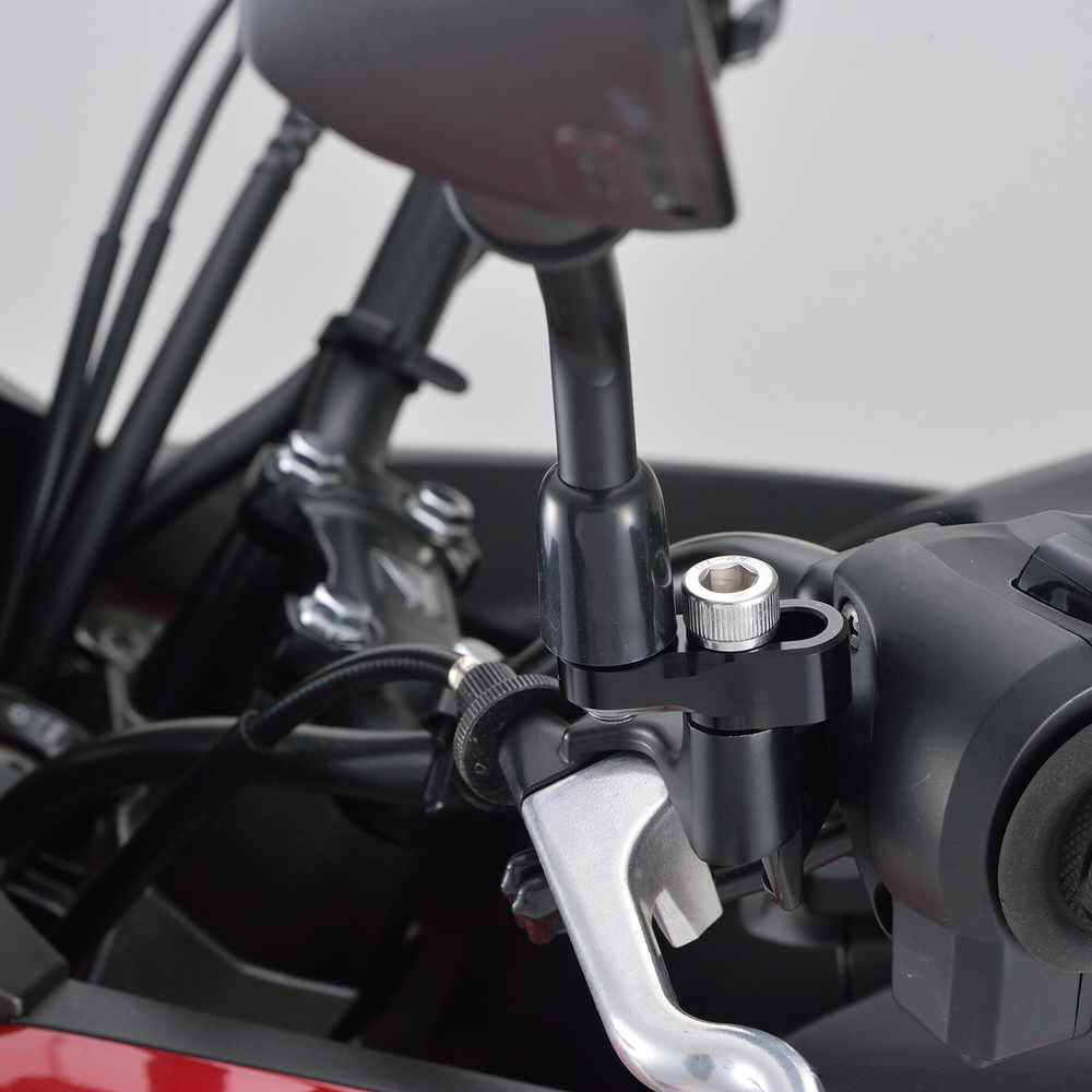 ミラーの取り付け位置をオフセットすることで、後方が見やすくなるミラーホルダー。M10正ネジのミラーが装着できます。・オフセット量:20〜30mm・アルミ削り出し、ブラックアルマイト仕上げ。※左右共オフセットする場合は2セット必要。※ヤマハ車は右ミラーが逆ネジのため、純正ミラーの取り付けはできません。※スクーターなど、純正ミラー取付部がカウルの下にある車両には不可。