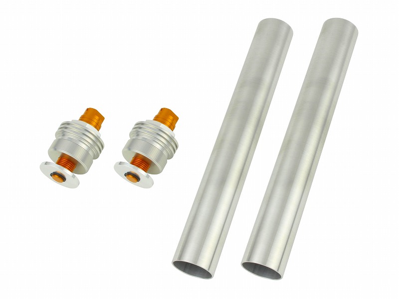 大排気量マシンから単気筒マシンに到るまで、フロントフォークのセッティングは意外と厄介なものです。プリロードアジャスター DELTAノブ 併用可能商品について:タイプ:イニシャルアジャスタ−TYPE2 カラー:シルバーボディ/ゴールド仕様:エアーバルブ無