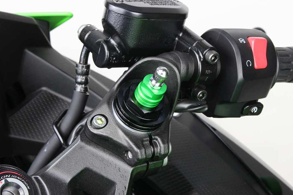 イニシャルアジャスタ−TYPE1 ブラックボディ/ライムグリーン エアーバルブ付 POSH(ポッシュ) Ninja250(ニンジャ)18年