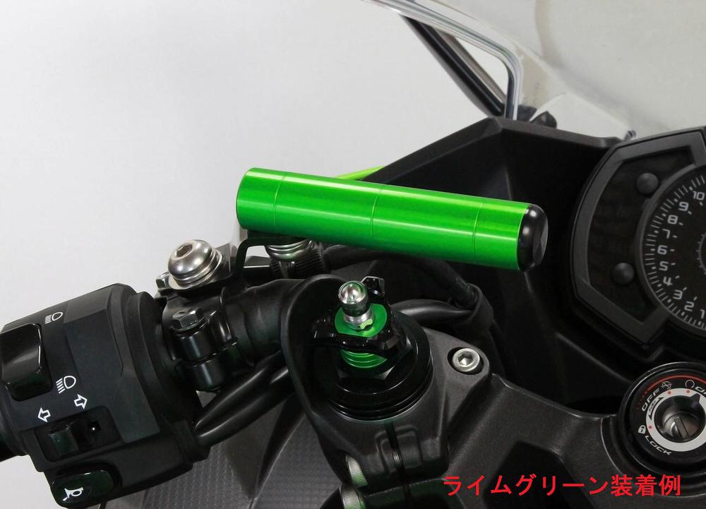 シャフト部Ф22.2mm。ハンドルと同径でハンドル装着形スマートフォンホルダーをハンドル以上の場所に固定できます。【仕様】・シャフト部:アルミ削り出し アルマイト仕上げ・シャフト全長:104mm(取り付け有効長さ約75mm)・シャフト直径:φ22mm・ステー:チール製・カチオン処理仕上げ。取付穴径:10.5mm、角度20度、厚さ:3.2mm【キット内容】1.マウントバー(ジュラコンエンド付):1本2.マウントステー:1個3.ボタンキャップボルト M10X15mm(P1.25):2本4.スプリングワッシャー M10:2個5.平ワッシャー M10:2個【注意】本商品は車種専用設計ではありませんので車体に対して取り付け角度が合わない事がありますのでご了承下さい。取付参考車種NINJA250(2018)NINJA400(2018)YZF-R25(-2018)MT-09Z900RS