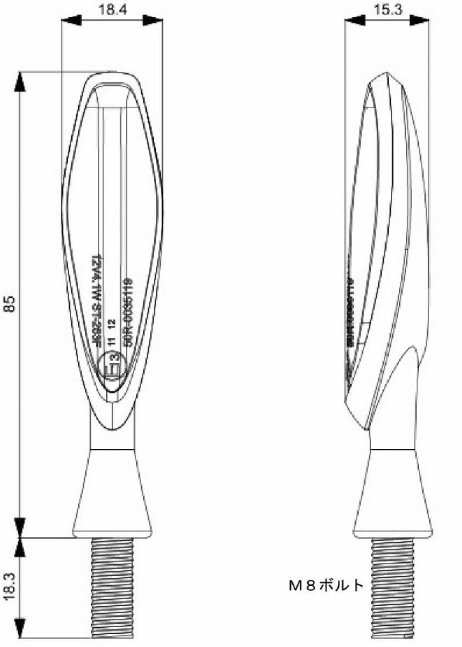 流れるウインカー(シーケンシャルタイプ)高輝度LEDオレンジ発光 12個装備12V専用国際ECE規格E13 50R取得済です。車検に関しては最寄り検査場にてご確認ください。取り付けボルトはM8サイズとなっております。フェンダーレスキット等M10穴に取り付けの際は別売りのM8→M10穴変換カラーとの併用をお勧めします。別途LEDウインカー対応のウインカーリレーが必要となります。POSH Faith LEDウインカーリレーをお勧め致します。・アルミボディ(根本部分一部ラバー製/スモークレンズ)・配線長約480mm・LED12個内蔵 Eマーク:E13 50R-0035119・MADE IN TAIWAN