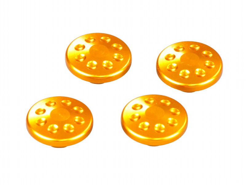 市販のM8キャップボルトの頭に差し込むだけの簡単取り付け。ハンドル周りのドレスアップ等にいかがでしょうか?アルミ削り出し4pcs/set.