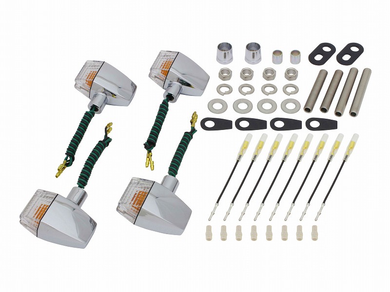 一台分に必要なパーツを全てパッケージングしました。付属電球:フロント(W球)12v23w・リア(S球)12v23w※専用ステーベースキット内容ウインカー本体S球x4個延長ステー5mmx2本M10X65スタッドボルトx2本M10X65スタッドボルトx2本M10ナット/ワッシャー/Sワッシャー各4個GPZステーベースx2枚GPZウインカーカラーx2個ウインカーステーベースx2ウインカー変換コード(カワサキ)X5本ウインカー本体:亜鉛ダイキャスト製GPZ900R(A1〜)シングル球仕様車用商品となります。お客様の車両をよくご確認くださいませ。