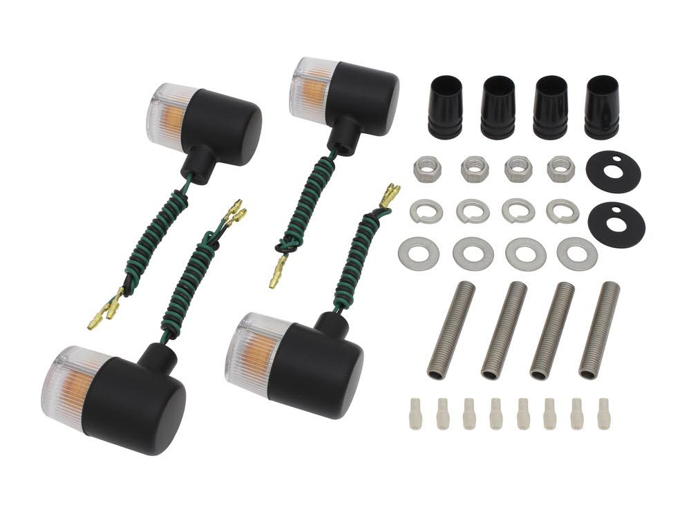 一台分に必要なパーツを全てパッケージングしました。付属電球:フロント(S球)12v23w・リア(S球)12v23w※専用ステーベース・変換カプラーコード付き。キット内容ウインカー本体S球x4個(前後左右)延長ステー20mmブラックx4本M10X55スタッドボルトx4本M10ナット/ワッシャー/Sワッシャー各4個リアステーベースx2枚ウインカー本体:亜鉛ダイキャスト製他の適合車輌情報XJR1200・XJR400/S(1993〜1994年)