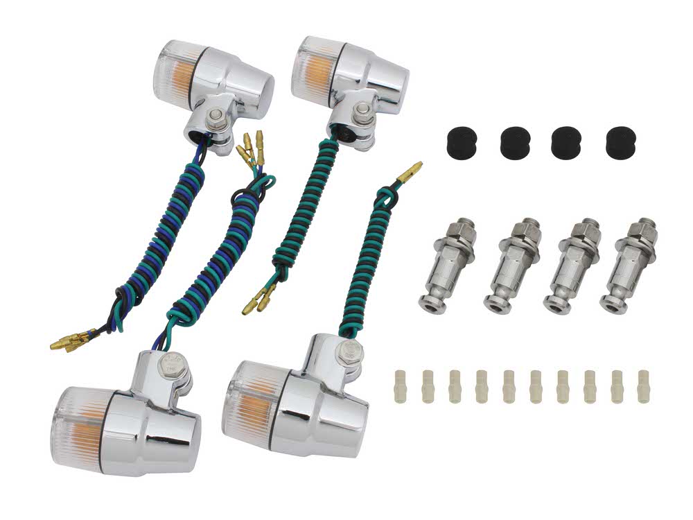 一台分に必要なパーツを全てパッケージングしました。付属電球:フロント(W球)12v23/8w・リア(S球)12v23w※専用ステーベース・変換カプラーコード付き。※フロントポジションランプ点灯します。キット内容ウインカー本体W球x2個ウインカー本体S球x2個M10ウインカーステーメッキx4本M10X40スタッドボルトx4本M10ナット/ワッシャー/Sワッシャー各4個防水スポンジx4個ウインカー本体:アルミダイキャスト製他の適合車輌情報XJR400/R(1995年〜)