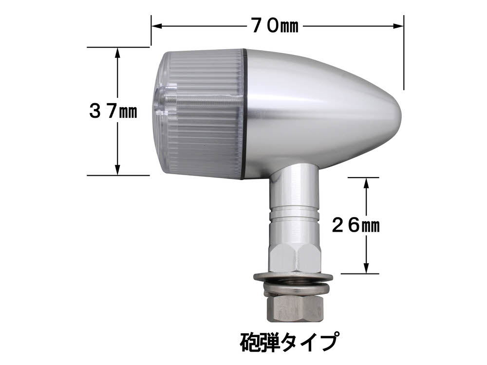 アルミマシンドウインカー 砲弾タイプ ショートステータイプ シルバー/クリア ダブル球仕様 POSH(ポッシュ)