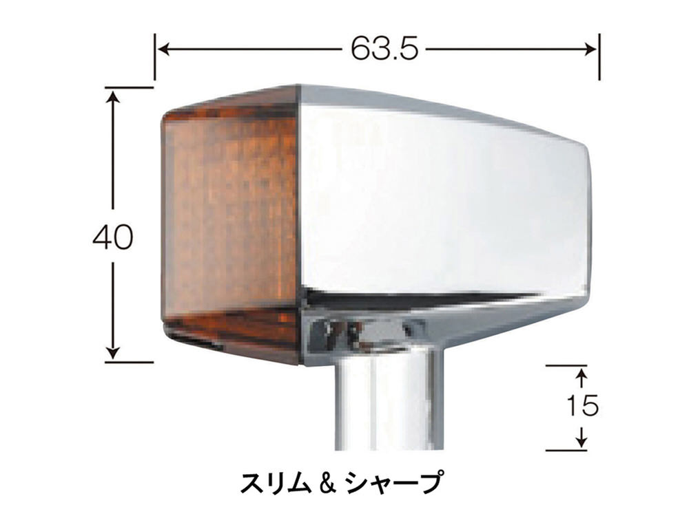 ※電球は付属しておりません。亜鉛ダイキャストボディー。メッキ仕上げをご用意。ステーを一体化したスリムなデザイン。※電球は付属しておりません。別売のG18型電球をお求めください。※ステー部の長さは別売の延長ステーで調整可能です。ウインカー2個セット付属品:スチール製M10×40mmスタッドボルト、スチール製ナット/ワッシャー類、オスギボシカバー