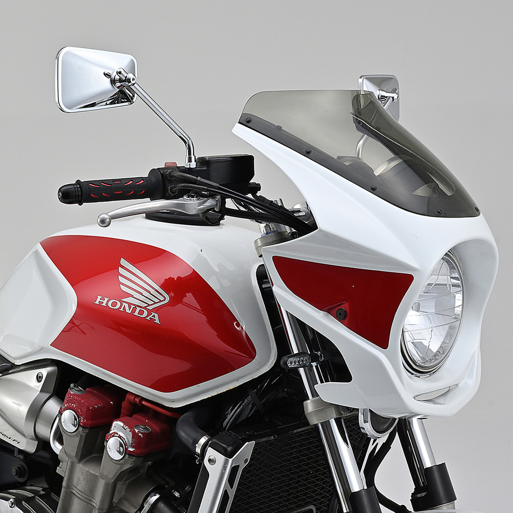 耐震・広角仕様のハイビジミラー。直径12mmの極太ロッド採用鏡するとともに、鏡の取付強度を上げることで耐震性を向上。振動の多いバイクでもミラーがぶれにくい。鏡は曲率R1002の広角仕様ので、後方の死角を減少。クラシックなスクエア形状。・鏡面:クリアーミラー・左右共通※鏡面積は新保安基準に適合したサイズですが、衝撃緩衝装置が無いため新保安基準適合外となります。