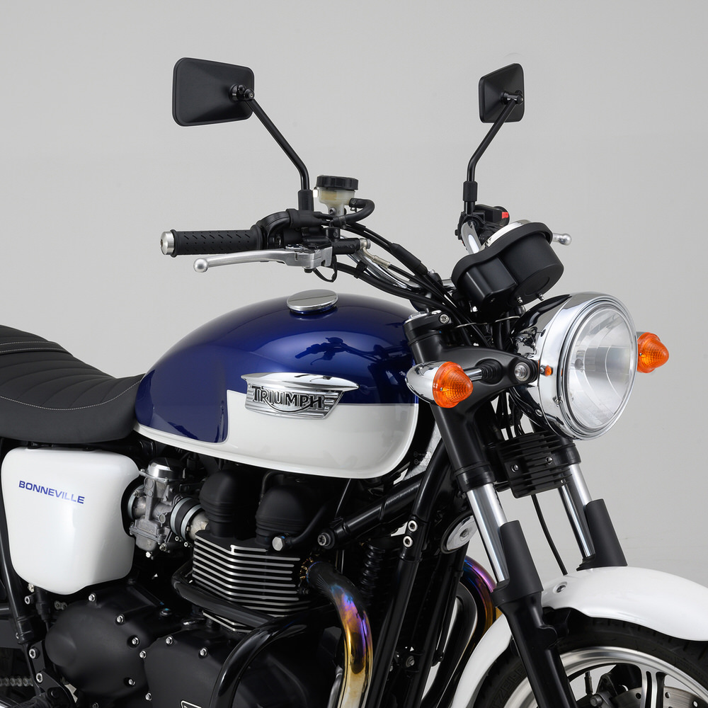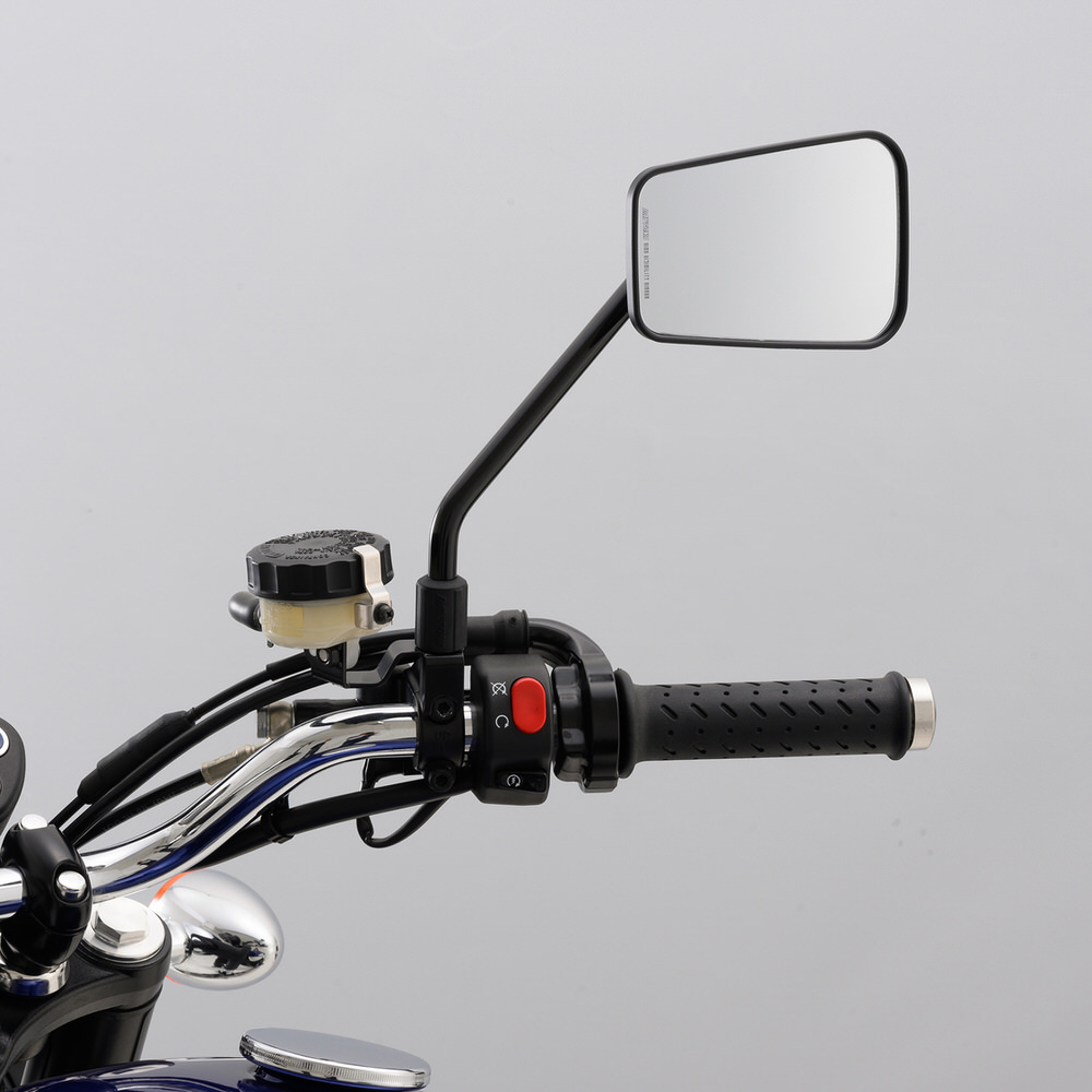 振動の多いバイクでもミラーがぶれにくい。鏡は曲率R1002の広角仕様ので、後方の死角を減少。