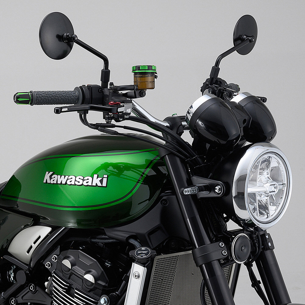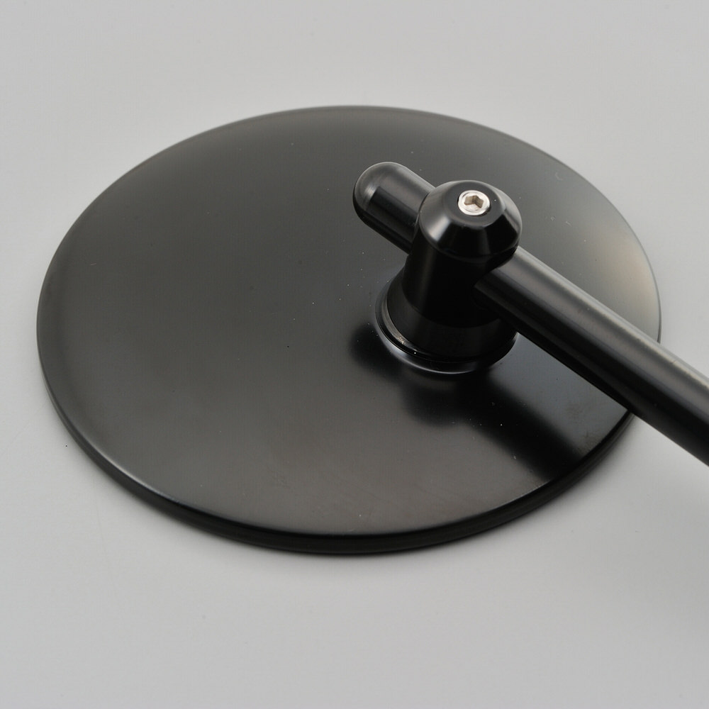 耐震・広角仕様のハイビジミラー。直径12mmの極太ロッド採用鏡するとともに、鏡の取付強度を上げることで耐震性を向上。振動の多いバイクでもミラーがぶれにくい。鏡は曲率R1002の広角仕様ので、後方の死角を減少。オーソドックスなラウンド形状で、車体のLOWフォルムを意識した低めのロッドを採用。・鏡面:クリアーミラー・左右共通