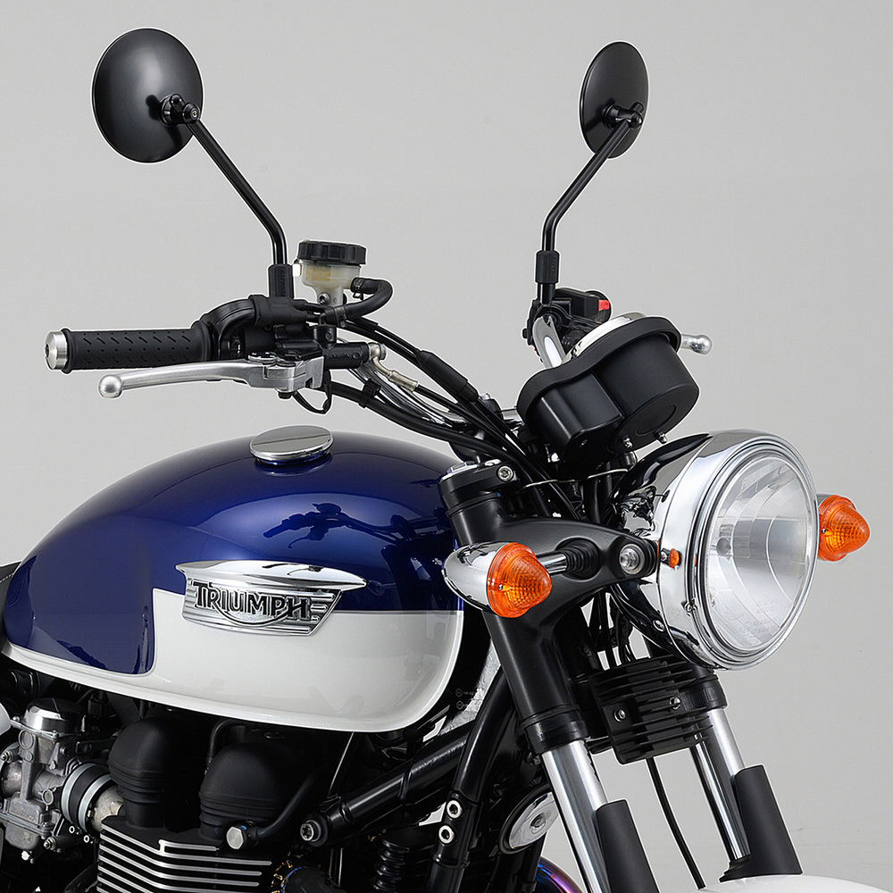 耐震・広角仕様のハイビジミラー。直径12mmの極太ロッド採用鏡するとともに、鏡の取付強度を上げることで耐震性を向上。振動の多いバイクでもミラーがぶれにくい。鏡は曲率R1002の広角仕様ので、後方の死角を減少。オーソドックスなラウンド形状。・鏡面:クリアーミラー・左右共通