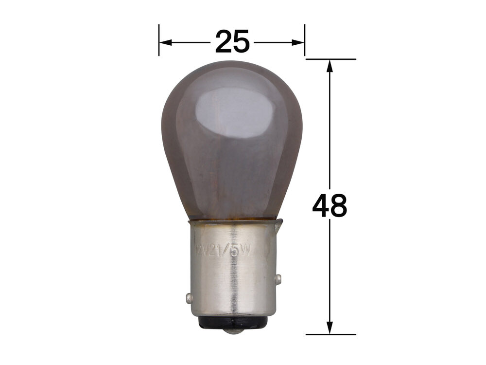 12V21/5W S25(ナス型)本製品は、オートバイ用ウインカーバルブです。正しい取り扱いをお願いいたします。その他のトラブルにつきましては、一切の責任を負いかねます。バルブは消耗品の為、お客様の責任のもと、定期的にご確認ください。変色などした場合は新品に交換してください。