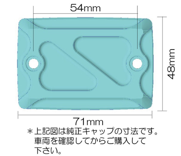 71mm×48mm、ネジ間隔54mmアルミ削り出し・アルマイト仕上げ。YAMAHA純正品番5VS-25852-00を採用しているマスターシリンダーにご使用いただけます。適合参考車種MT-09/MT-07/FZ1/FAZER適合車種であっても取付ネジ間など、ご確認の上ご購入くださいませ。