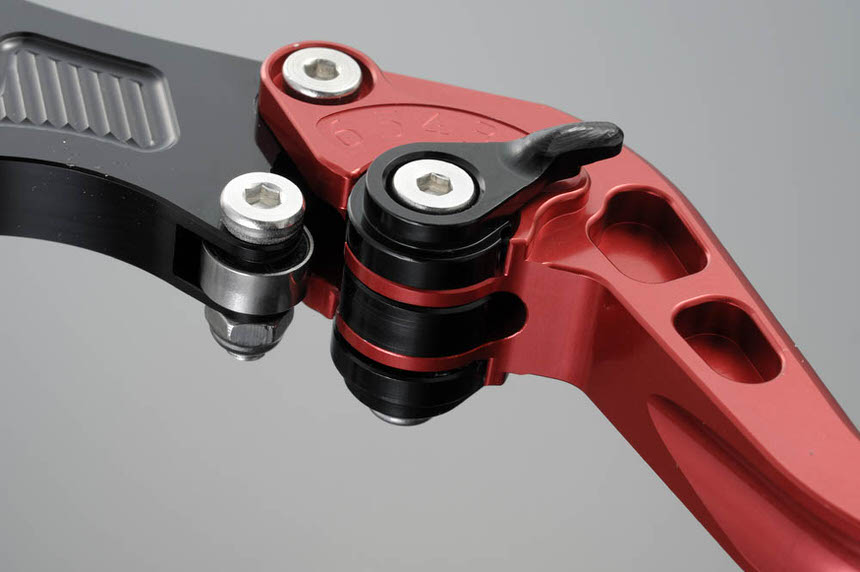 アルミ削り出しアルマイト仕上げ。レバー調整アジャスターはブラックで6段階の調整可能。調整範囲は、レバーエンド中心〜グリップ中心距離で約80m-106mm。レバー本体×1