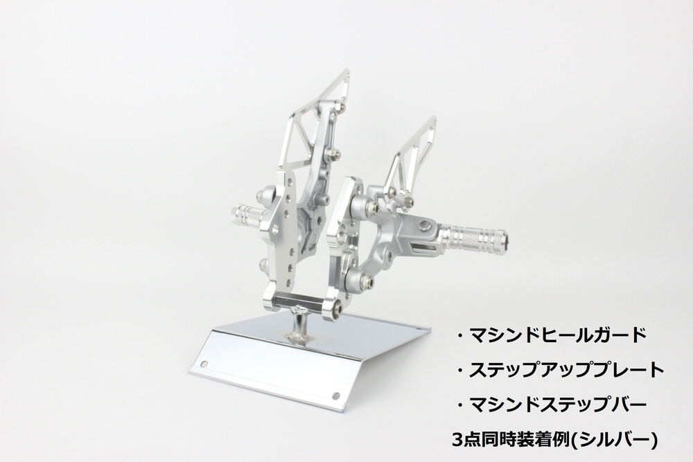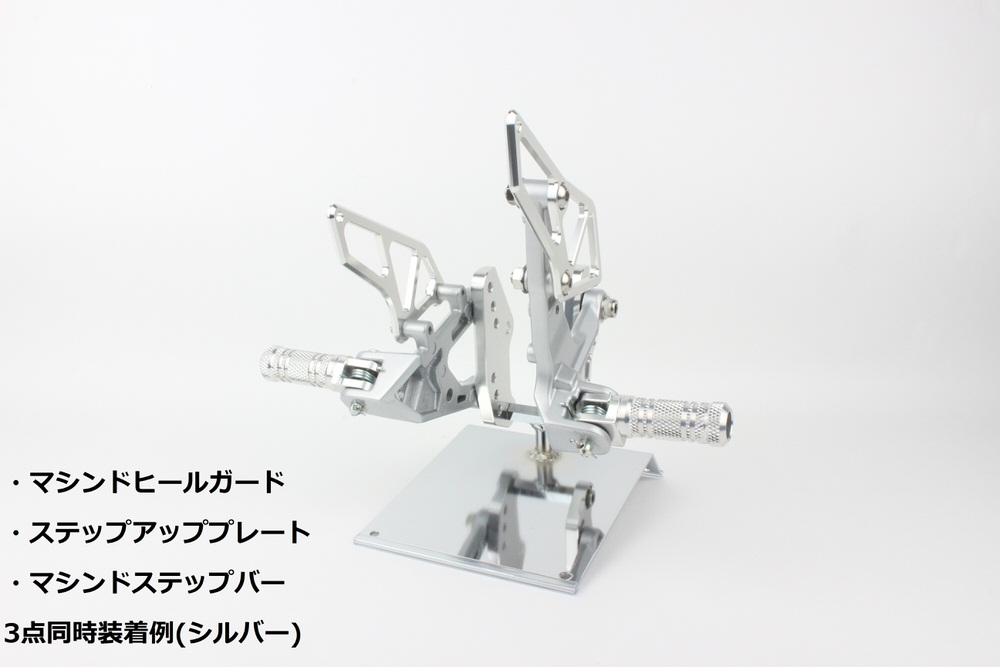 アルミ削り出し、アルマイト仕上げ3ポジション選択可能A:8mmUP、20mmBACKB:21mmUP、25mmBACKC:30mmUP、35mmBACK※ステップポジションによっては、リアマスタータンクホースのカットが必要になります。
