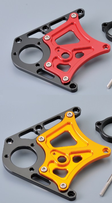 3ピース構造でスプロケットカバーのみの脱着が可能です。アルミ削り出し、アルマイト仕上げ。