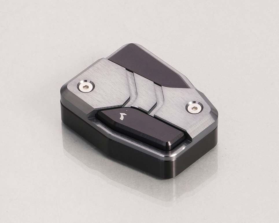 ブレーキペダル先端に装着する2ピース構造のドレスアップパーツです。アルミ削り出しアルマイト仕上げ全幅×全長:60×46mm