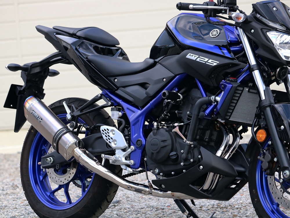装着する場合、アンダーカウルカット加工するか、アンダーカウルを取り外してのご使用となりますので予めご注意下さい。※車体の個体差によりカット幅が変わる恐れがあります。(説明書にカット幅の分かるテンプレートがコピーされています。)【SS-OVAL仕様】※サイレンサーバンド等の備品を含んだ重量。SS-OVALサイレンサー仕様:重量4.10kg※ノーマルマフラーは7.95kgアクセルレスポンスの適正化により低速域から高速域までノーマルをアップデートしてくれます。サイレンサーは完全ストレート構造。新型MT-25から放たれるパワーフィールを存分堪能して頂けます。UPスタイルにSS-OVALサイレンサーをレイアウトする事でスポーティーかつスタイリッシュな雰囲気を演出。音量をしっかりクリアしつつ、低音の効いた存在感のあるツインらしい音質で走りの楽しさを更に引き立てます。スリップオンとは一味違うダイレクトなパワーフィールとサウンドを存分に堪能して頂ける商品です。近接/加速騒音値:94dB/81dBJMCA認証品OF/Dボルト:OK※装着する場合、アンダーカウルカット加工するか、アンダーカウルを取り外してのご使用となりますので予めご注意下さい。※車体の個体差によりカット幅が変わる恐れがあります。(説明書にカット幅の分かるテンプレートがコピーされています。)