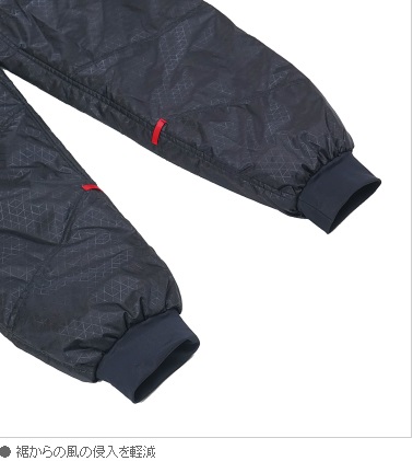 保温素材に超軽量・最高の保温性能・イージーメンテナンス性を兼ね備えたPrimaLoftGold Insulation with Cross Core[TM](プリマロフト・ゴールド・インサレーション・ウィズ・クロス・コア[TM])を採用しました。プリマロフトは、羽毛に代わる画期的な超微細マイクロファイバー素材。羽毛のように軽くて暖かい保温性と柔軟性と速乾性を発揮するだけではなく、羽毛にはない撥水性がある為、水に濡れてもロフト(かさの高さ)を失わず常に保湿性を維持し、体温が奪われるのを防ぎます。 オールシーズン対応パンツとの併用も可能な、羽毛を凌ぐ高いパフォーマンスを発揮するインナーシリーズのフラッグシップモデルです。MATERIAL:表地/エンボスタフタ 裏地/エンボスタフタ、トリコットチタンスパッタリング加工 中綿/プリマロフト