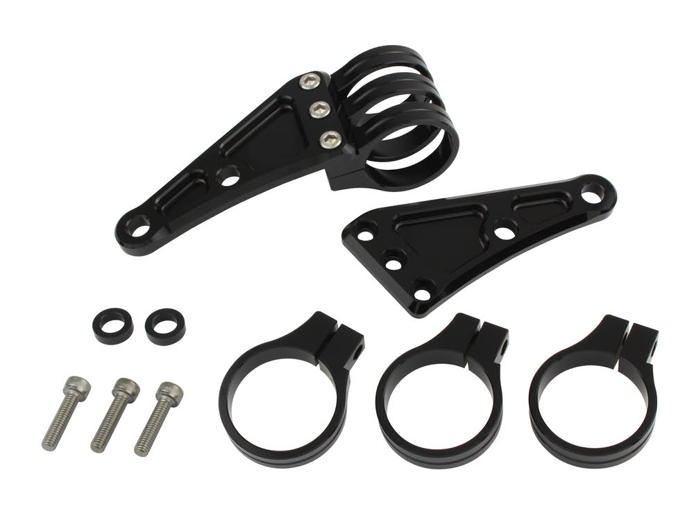 サークルクランプタイプ Φ41mmアルミ削り出し、アルマイト仕上げ、ステンレスボルト使用※フォーククランプの取り付けにはトップブリッジを取り外す必要があります。※クランプの位置によってはタンクと干渉する場合がありますのでご注意ください。