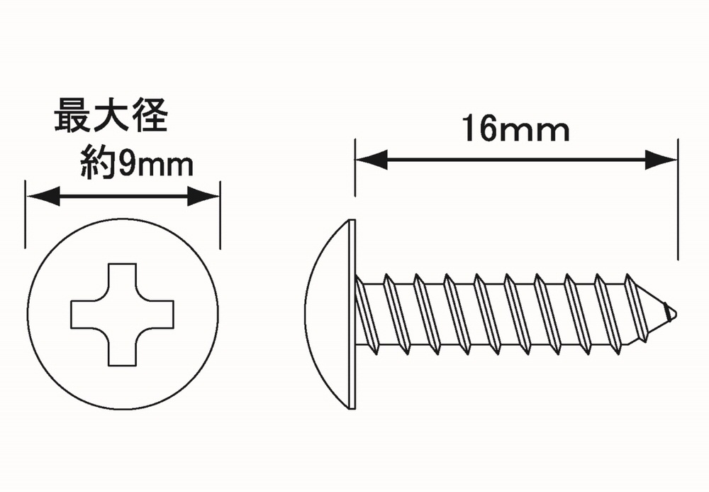 最大径:約9mm長さ:16mm素材:ステンレス10本入