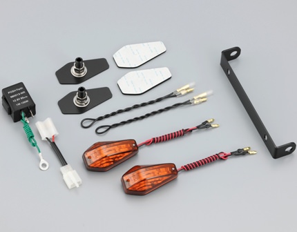 ストリームラインタイプ貼り付けタイプのエアロLEDをナンバープレート横に装着するキット250cc〜のリア周りに装着可能(※〜125cc装着不可)装着に必要なウインカー左右、ウインカーリレー、ステー、延長コード付きセット内容エアロLEDウインカー本体(両面テープ付)×2個マウントベース(ボルト付き台座)×2個ワイドワットウインカーリレー平端子(110型3P変換カプラー付き)×1個ユニバーサルリアウインカーステー黒・×1枚ウインカー配線延長コード30cm×4本※こちらの商品は汎用品になります。250cc〜に適合しますが、ウインカーリレー(品番090010-WR/090011-WR/090012-WR/090013-WR)の非適合車種には装着できません。※車種によっては配線端子形状に応じて変換カプラーの併用が必要です。