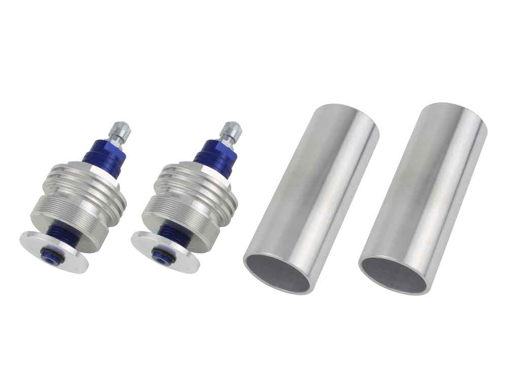 大排気量マシンから単気筒マシンに至るまで、フロントフォークのセッティングは意外と厄介なものです。そこでEfficient Sportsイニシャルアジャスターを装着する事により、フロントフォークのエアー圧とプリロードを容易に変更でき、微妙で絶妙なセッティングが簡単に出来ます。タイプ:エアバルブ付※車種によりハンドルが干渉する場合があるため、ポジションを変更(もしくはバック)する必要があります。