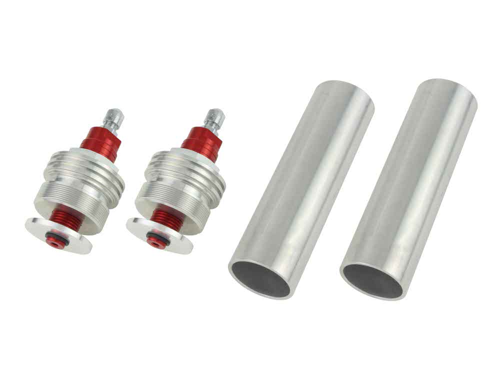 大排気量マシンから単気筒マシンに至るまで、フロントフォークのセッティングは意外と厄介なものです。そこでEfficient Sportsイニシャルアジャスターを装着する事により、フロントフォークのエアー圧とプリロードを容易に変更でき、微妙で絶妙なセッティングが簡単に出来ます。タイプ:エアバルブ付※車種によりハンドルが干渉する場合があるため、ポジションを変更(もしくはバック)する必要があります。