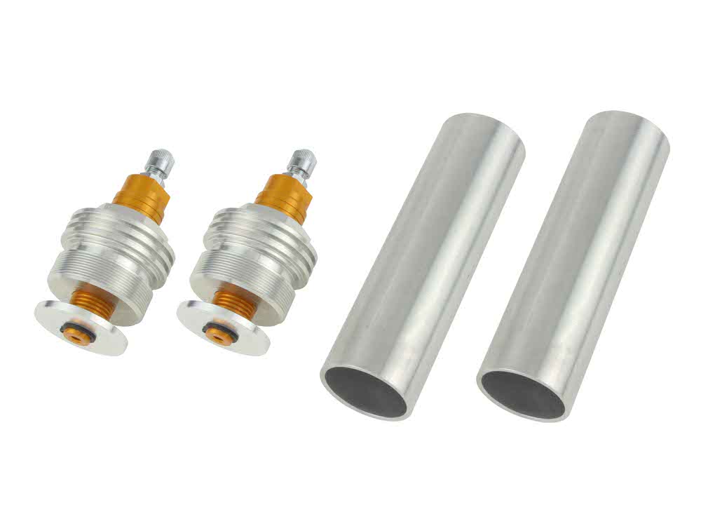 大排気量マシンから単気筒マシンに至るまで、フロントフォークのセッティングは意外と厄介なものです。そこでEfficient Sportsイニシャルアジャスターを装着する事により、フロントフォークのエアー圧とプリロードを容易に変更でき、微妙で絶妙なセッティングが簡単に出来ます。タイプ:エアバルブ付※車種によりハンドルが干渉する場合があるため、ポジションを変更(もしくはバック)する必要があります。
