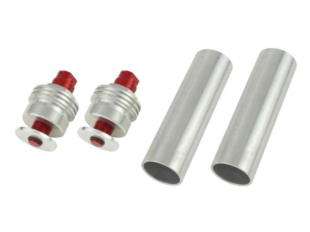 大排気量マシンから単気筒マシンに至るまで、フロントフォークのセッティングは意外と厄介なものです。そこでEfficient Sportsイニシャルアジャスターを装着する事により、フロントフォークのエアー圧とプリロードを容易に変更でき、微妙で絶妙なセッティングが簡単に出来ます。タイプ:エアバルブ無※車種によりハンドルが干渉する場合があるため、ポジションを変更(もしくはバック)する必要があります。
