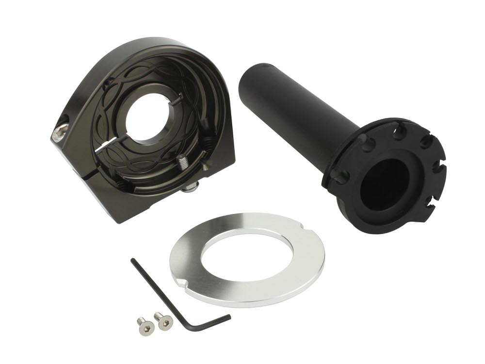 従来のスリムラインハイスロットルキットを更に改良したスムーススリムラインハイスロットルキット1.スムースな動きが可能な樹脂製スリーブ2.スロットルハウジング内にはグリスキャッチャーを設け、メンテナンス効率を改良3.スロットルホルダー部は、厚さ14mmアルミ削り出し4.スロットルケーブルナットはステンレス製※ノーマルスイッチ類使用可能。※グリップは付属しておりません。