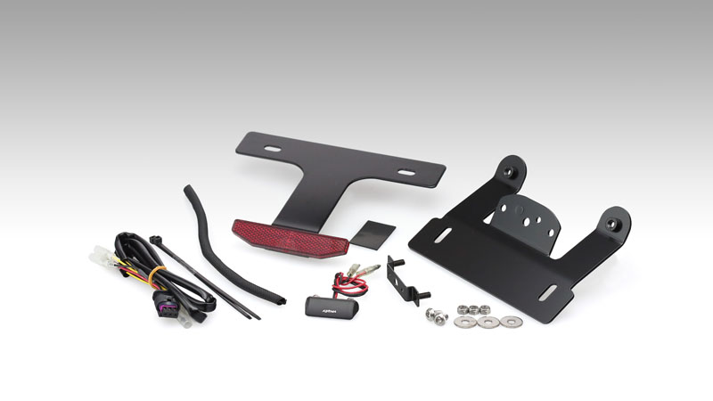 リアまわりをスッキリスタイリッシュに見せるライセンスブラケットキット。標準装備のコンビランプ(テール・ウインカー一体型ランプ)を最大限に活かしたライトカスタム。※本製品は平成33年4月1日ナンバープレート新基準対応品です。 ※本製品を使用しての車両検査はご使用者の責任のもと行って下さい。車検に必ず通るものでは有りません。事実上、各地の陸運局により判断基準が異なる為、検査前に車検業者へご相談いただき確認して下さい。※本製品へのテールランプの装着は絶対に行わないで下さい。