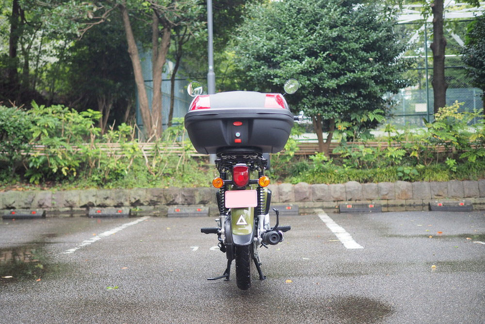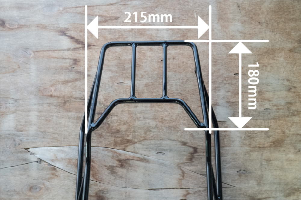 素材:スチールカラー:ブラックウレタン塗装仕上げ純正キャリア共用タイプ耐荷重:5kgリアボックス容量:48L1.天板の高さは純正とほぼ同じ長い物を積載できるように天板の高さは純正にあわせました。やや後ろ上がりなのはリアボックスを装着した際に開閉した蓋が勝手にしまらないようにするためです。2.純正キャリアの機能性は損ねません。純正キャリアはセンタースタンドを立てる際に掴みやすく設計されているため、手を入れるスペースをしっかりと確保しました。3.天板サイズは215mm×180mm天板の横サイズを純正キャリアに合わせて設計する事も検討しましたが、キャリア自体の重量が重くなり耐荷重に悪影響がでるためコンパクトに設計しました。4.耐荷重は5kg天板を支える支柱部分には補強を入れ耐荷重は5kg。大型のリアボックスも装着する事が可能です。5.リアボックスベースを装着しやすい天板デザインワールドウォーク製はもちろん、GIVIやクーケースなどのリアボックスベースを装着しやすい天板レイアウトにしました。