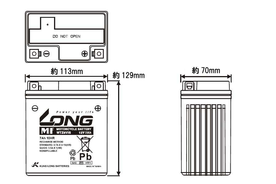 バッテリー 12V/7Ah 液注入済 互換 GTZ8V YTZ8V YTX7L-BS TTZ8V 相当 KUNG LONG(カンロン)