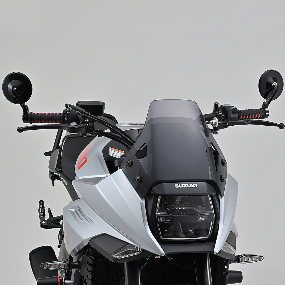 ヨーロッパでは定番化しつつあるバーエンドミラー。ドイツ人デザイナーによる洗練されたデザインが人気のアルミ削りだし製。アグレッシブで特徴的なデザインは新型スポーツネイキッドにベストマッチ。取り付けには別売りバーエンドミラーアダプターが必要です。・アルミ削り出しマットブラックアルマイト仕上げ・左右共通・片側1本入り・新保安基準適合サイズ※ハンドルを左右に切り車両やレバーに接触しないことを確認のうえ、ご使用ください。※取り付けには別売りバーエンドミラーアダプターが必要です。