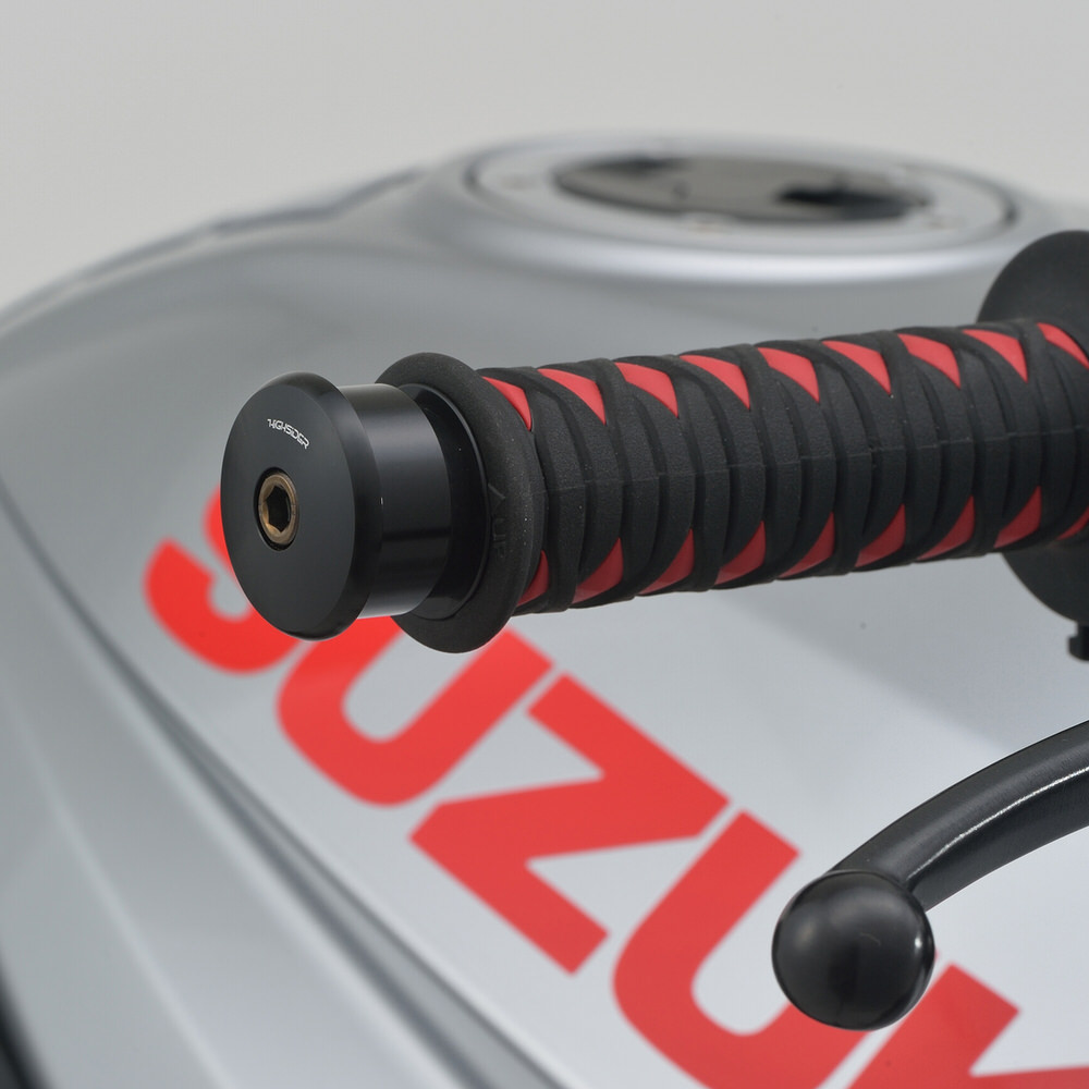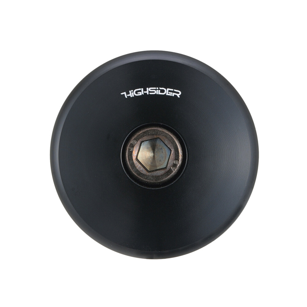 アルミ削り出しの高品質ハンドルバーエンド。HIGHSIDER バーエンドミラーをクランプするのに最適。・アルミ削り出しブラック塗装・ハンドル内径φ12〜φ22まで適合・2本入り※ハンドルを左右に切り車両やレバーに接触しないことを確認のうえ、ご使用ください。