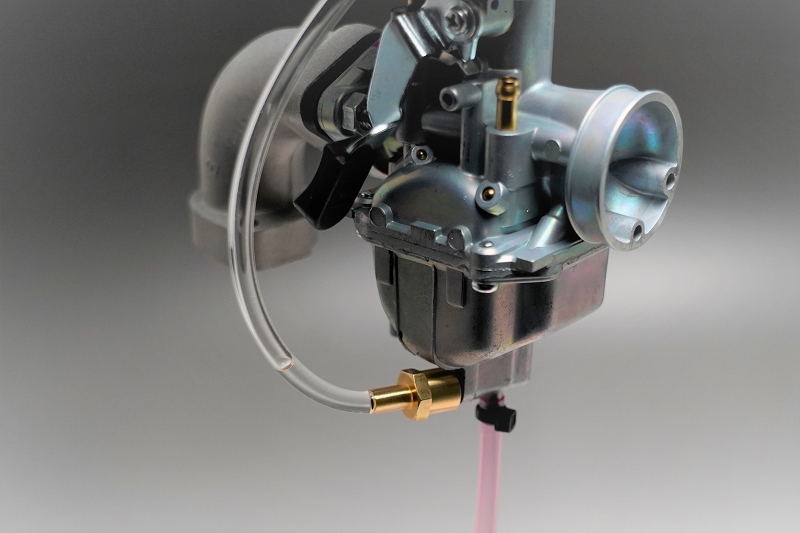 ドレインホースの燃料落下をストッパーで制御。ドレインボルトを取り外し、こちらのニップルを取り付けます。クリアホースをのぞき込んでいただければ、すばやく簡単に油面高さを確認できます。