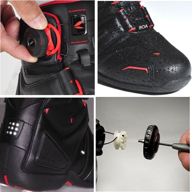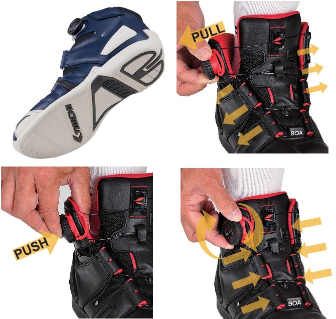 防水/透湿機能を兼ね備えるドライマスターと、Boaフィットシステムを融合。アウトサイドに配置したBoaリールは操作性を高めました。ソールには高いグリップと柔軟性に富むオリジナルソールを採用し、衝撃吸収材を内蔵したインソールとの相乗効果により、ライディング時はもとより、歩行時にも抜群の履き心地を実現。デニムはもちろんのこと、レザーパンツにもマッチする次世代のライディングシューズです。□防水透湿□転倒時にダメージを受けやすいつま先、アウトサイド、ヒール、くるぶしには成形プロテクターを使用□高いグリップ力と快適な履き心地のオリジナルソール□かかと部分に衝撃吸収素材を使用したオリジナルインナーソール