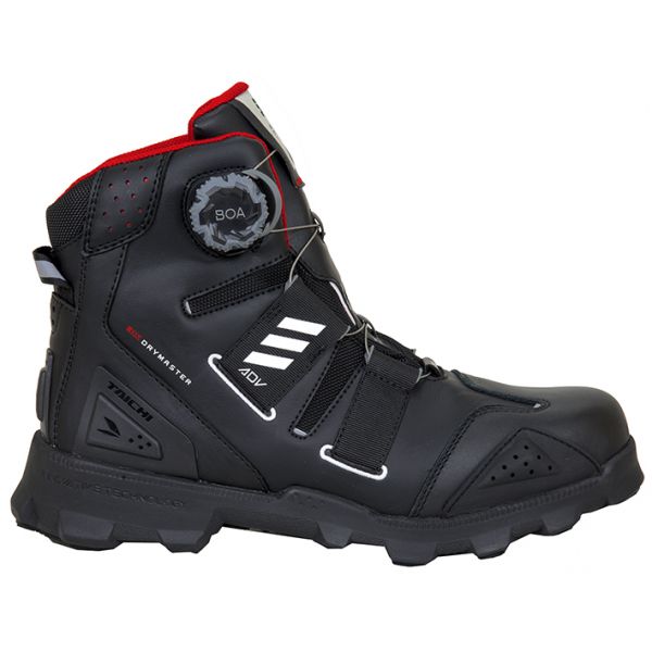 アドベンチャーコンセプトのデザインに基づき、悪路でのグリップに優れたTAICHIオリジナル成型ソールを採用したシューズ。アッパーのカラーに合わせてソールにも3タイプのカラーを設定しております。防水と透湿機能を兼ね備えたDRYMASTERをインサートし、悪天候にも快適な履き心地を実現。着脱に便利なBOAダイヤルは大型のM4タイプを新採用し、グローブを装着したままでもロックとリリースの操作を容易に。スェード設定のSUEDE BLACKとSUEDE BROWNの左足にはアクセサリーとして引手をつけております。□第4世代(M4)BOAレーシングシステム□硬質成形プロテクター(ヒール)□オリジナルデザインビブラムソール