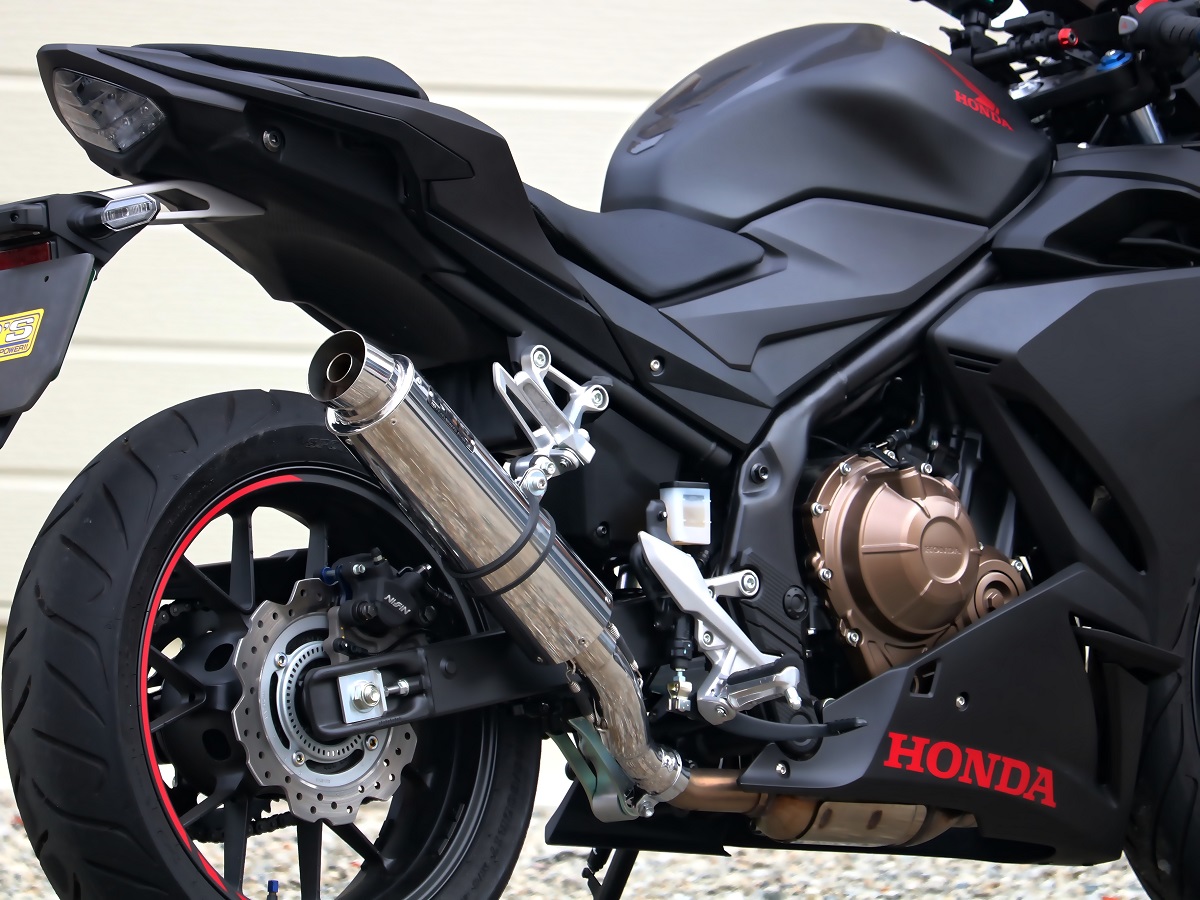 ベンチテストにより徹底的に性能をチェック、CBR400Rの特性をより活かすべく開発しました。アクセルレスポンスの改善、低中速域〜高速域に至るまで全域においてアップデート。今回、CBR400R専用にセンターパイプを開発、アクセルレスポンスの改善、低中速域〜高速域までストレスの無い吹け上がりを堪能頂けます。音質は低音を効かせたジェントルなサウンドに仕上げており、タウンユースからツーリングユースまでライダーを疲れさせない心地の良いサウンドに仕上げています。※スリップオンマフラー取り付けに必要なジョイントガスケットを付属しております。※車検時に必要な純正触媒仕様確認書(※A4紙1枚)も同梱しています。
