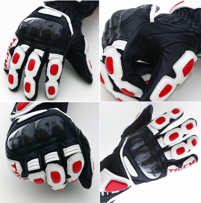 甲部に配置されたカーボンプロテクターはフローティング構造とし安全性と操作性を両立。 ストリートからサーキットまで幅広く使えるスタンダードレーシンググローブ。ベンテッドホール(指股)シャーリング(指・甲)