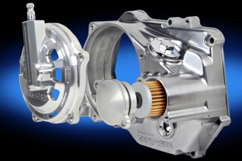 SP武川社製乾式クラッチ用5・6速クロスミッションの同時装着が必要になります。右クランクケースカバー、クラッチカバー詳細兼用の右クランクケースカバーを採用右クランクケースカバーにはアルミダイカスト製を採用。カバー表面はバフ研磨後、クリア塗装が施されています。湿式クラッチ、乾式クラッチのどちらにも使用出来る右クランクケースカバー形状を採用。乾式クラッチ購入後もスペシャルクラッチ(湿式)へ仕様変更出来ます。※仕様変更はSP武川社指定パーツの別途購入が必要です。アルミ削り出しクラッチカバー(ワイヤー式)ベンチレーションホールを増やし、クラッチアウター周りの冷却効果を更に高めています。クラッチカバーを外すことで、クラッチスプリング、クラッチプレート、クラッチフリクションディスクの交換が容易に行えます。アルミ削り出しカバーの表面にはシルバーアルマイトを施しています。オイルエレメント内蔵オイル内にあるスラッジや金属摩耗粉などの不純物をろ過します。オイル内の不純物を除去することで、エンジン出力の維持が可能になります。オイルエレメントは信頼性の高い、カートリッジ式ペーパータイプを採用。オイルレベル確認窓付きオイル量の確認が行えます。エンジンオイル確認窓には耐久性のあるガラスを採用。大型オイルフィラーキャップを採用アルミダイカスト製クロムメッキ仕上げ注油口を大きくすることでオイル交換が容易に行えます。6ディスククラッチ詳細クラッチユニットの変更ノーマルクランクシャフト(1次側)からミッションのメインシャフト(2次側)に変更することで、クランクシャフトの回転マスが低減し、クランクシャフトの耐久性やスロットルレスポンスが向上します。6ディスク仕様従来品に比べ、クラッチアウターなどの回転部分を小径化することで、オイル拡散によるロス馬力の減少や更なるレスポンスの向上と回転マス重量の約12%軽減を実現し、エンジンパワーを無駄無く伝達します。ケブラー配合フリクションディスクを5枚、ジャダーの軽減を図る専用フリクションディスク1枚を採用し、6ディスク化を実現。これにより、クラッチの容量が従来品に比べ約20%アップし、ハイパワーエンジンに対応します。標準クラッチ仕様(スリッパー無し)プライマリードリブンギアクラッチ接続時にギア等のショック軽減を図るラバーダンパーを内蔵。リフタープレート標準仕様はアルミ削り出しリフタープレートを採用。クラッチスプリング耐疲労性に優れ、安定したクラッチフィールを実現。オプショナルパーツオイルクーラーユニットオイルクーラーユニットをオイルエレメント部に装着することで、オイルクーラーへのオイル取出しが行えます。SP武川社ではオイルクーラーユニット付きのオイルクーラーキットがあります。SP武川社WEBカタログをご覧下さい。インラインサーモユニットオイルラインにSP武川社製インラインサーモユニットを装着することで、オーバークールの防止が可能になります。【注意事項】SP武川社製乾式クラッチ用5・6速クロスミッションの同時装着が必要になります。