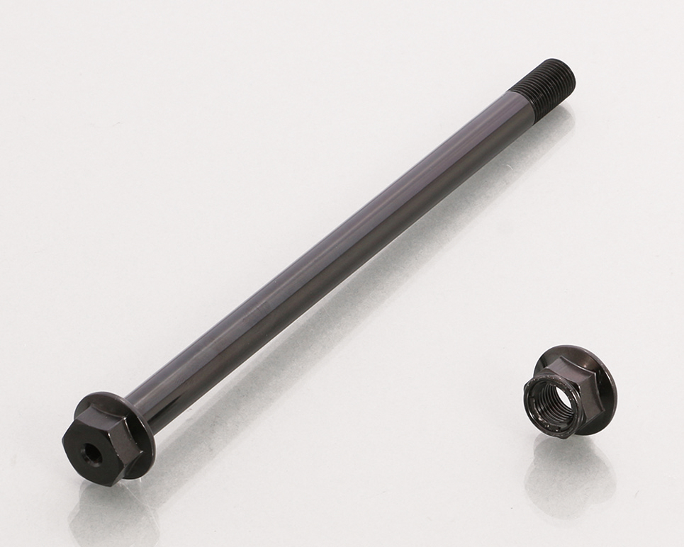 バネ下重量を軽減させる中空穴を空けた軽量アクスルシャフトです。スチール製(クロモリ鋼)/ブラック仕上げシャフト径:φ12中空穴径:φ5シャフト長(首下長さ):201mmシャフト単体重量:約164g(ノーマル重量194g)適合純正品番:44301-KZV-L00アクスルシャフトを中空(φ5)にすることで、約15%軽量化になりバネ下重量軽減を実現。クロモリ鋼で剛性アップ